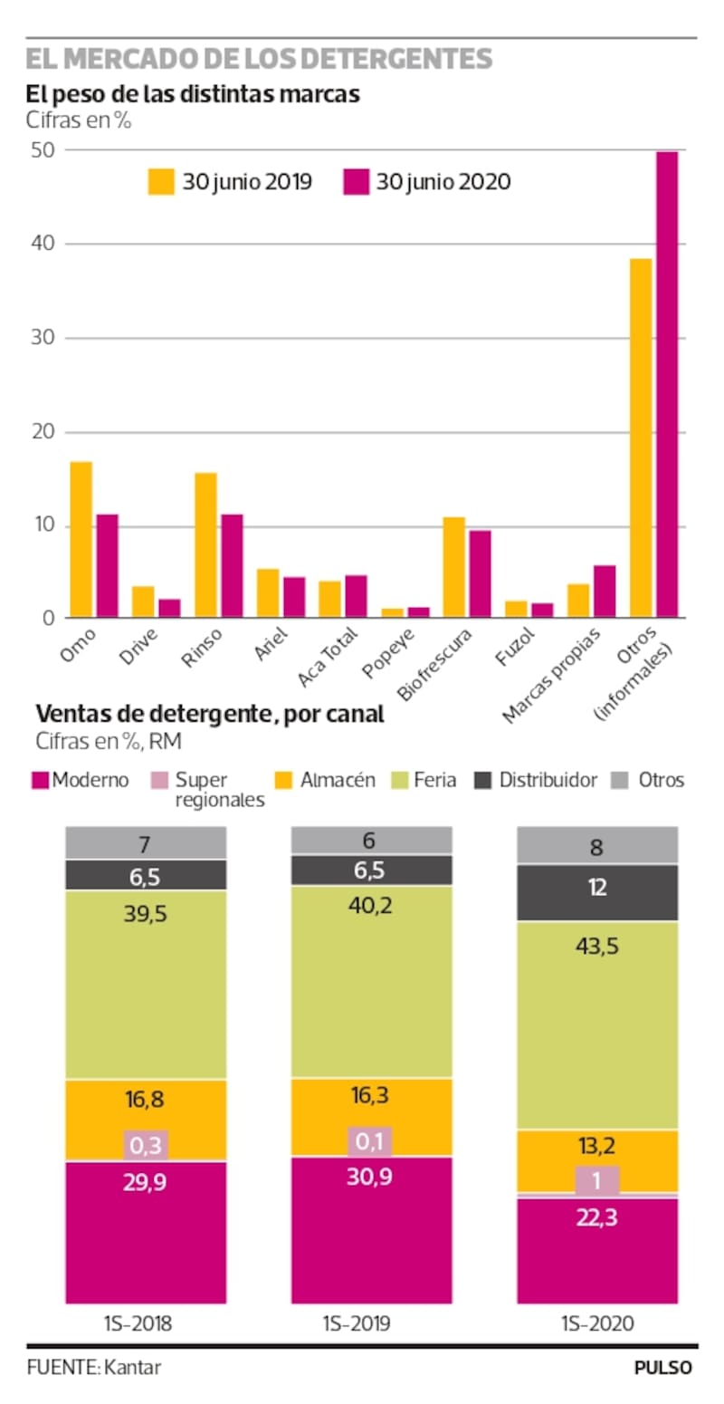“La proliferación de detergentes informales en ferias libres, mayoritariamente líquidos, hoy representan casi la mitad del mercado, lo que ha forzado a reducir la producción de polvos”, sostuvieron desde Unilever en esa instancia.