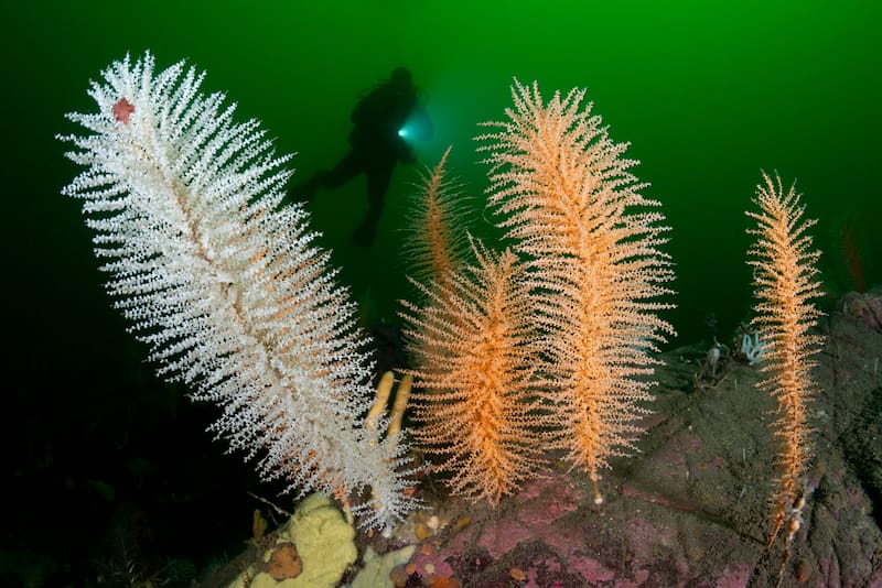 Entre las especies fotografiadas destacan estrellas de mar, erizos, plumas de mar, anémonas y corales.