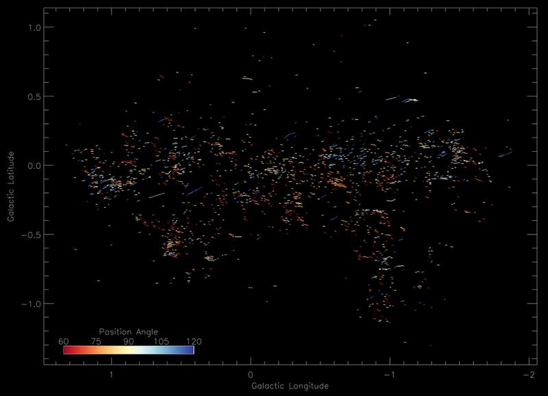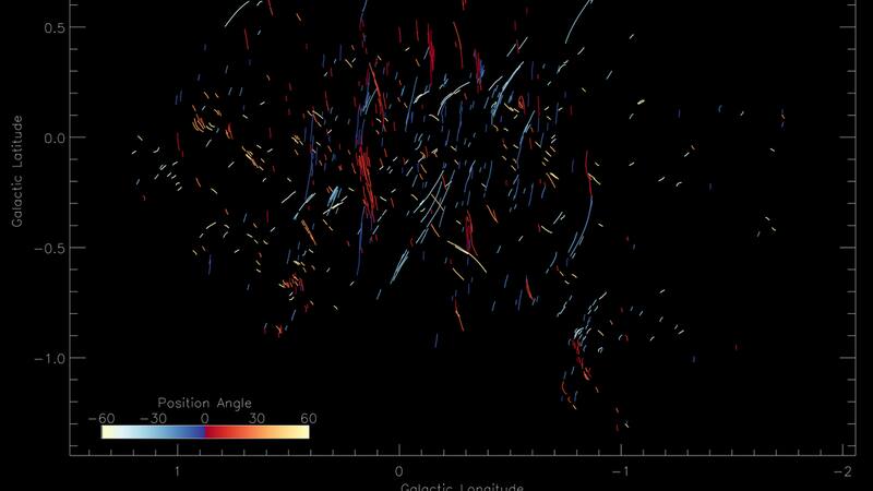 Luego, en una serie de publicaciones en 2022, Yusef-Zadeh (en colaboración con Heywood, Richard Arent y Mark Wardle) reveló casi 1,000 filamentos verticales, que aparecieron en pares y grupos, a menudo apilados a la misma distancia o uno al lado del otro como cuerdas en un arpa.