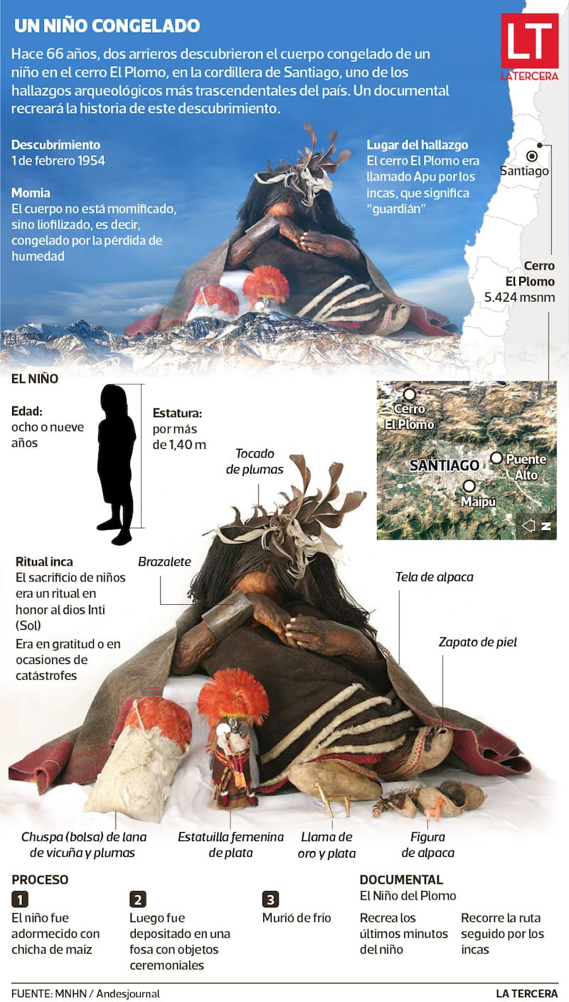 Ahora, 66 años después de su hallazgo, el documental El Niño del Plomo, realizado por Andesjournal, firma que trabaja sobre el pasado ancestral de América del Sur y los Andes, junto a un equipo científico y de investigadores del Museo Nacional de Historia Natural, retrató como nunca antes la legendaria historia y los últimos y dramáticos minutos finales del niño.