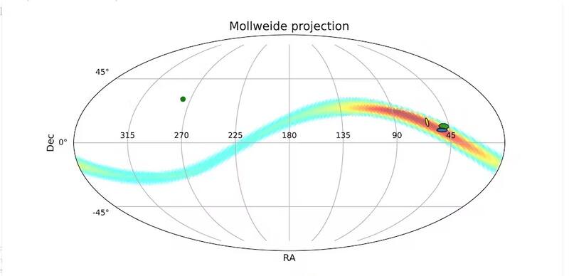 La primera pista de que podría haber una conexión entre el meteorito CNEOS14 y el Planeta 9 apareció cuando trazamos en un mapa del cielo la órbita que debería tener el planeta, según las simulaciones más detalladas, y luego superpusimos el origen de CNEOS14. Encontramos una sorprendente coincidencia (ver la figura a continuación) entre el origen del meteorito y la región donde las simulaciones predicen que es más probable que se encuentre el Planeta 9. La probabilidad de que tal coincidencia sea resultado del azar es del orden del 1%.