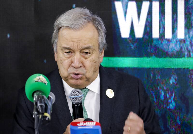 El Sisi, que pidió el final de la guerra de Rusia en Ucrania, fue suave en comparación con el enérgico secretario general de Naciones Unidas, António Guterres, que dijo que el mundo está “en una autopista al infierno climático”.