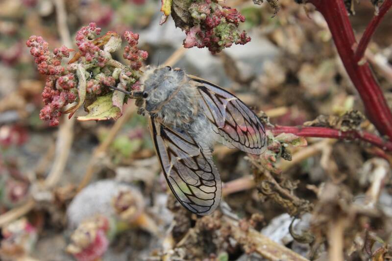 Los cicádidos, conocidos en nuestro país como chicharras o cigarras, son insectos que podemos diferenciar particularmente por el canto de los machos, que de adultos emergen del suelo en los meses de noviembre y diciembre, y que escuchamos desde las partes altas de los árboles, encontrándose presentes desde Copiapó a Puerto Montt.