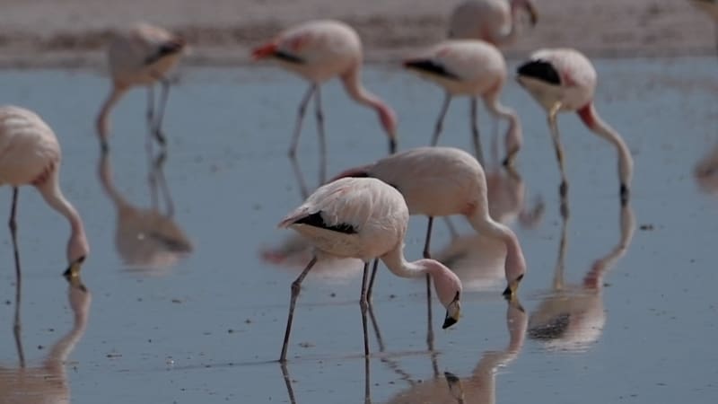 En un oasis en medio del desierto, entre chañares, algarrobos y tamarugos, se encuentra la Reserva Nacional de Flamencos, en San Pedro de Atacama. Allí, bajo un sol intenso y frente a lagunas que parecen espejos del cielo, un grupo de científicos del Zoológico Nacional se despierta antes del alba. Revisan sus mochilas, ajustan las trampas y comienzan una nueva aventura en los salares, donde esperan capturar a sus protagonistas: los flamencos.