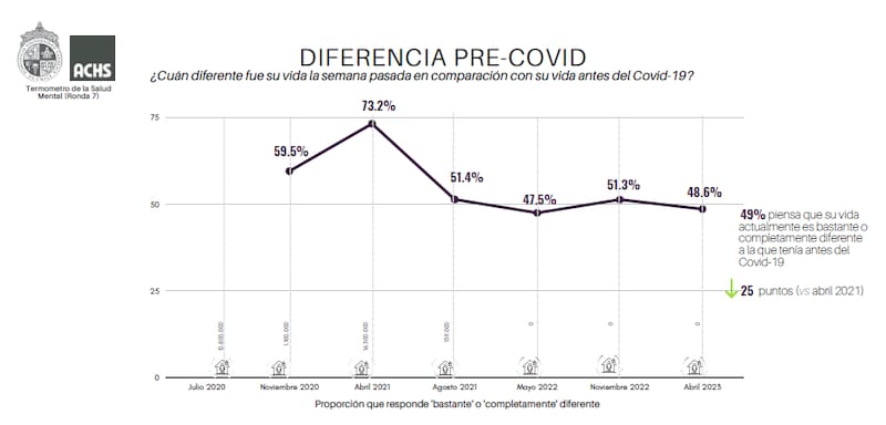 La posibilidad de contagio como un estresor cayó desde 61,8% en abril de 2021 a 15,7%. También en menor proporción en el mismo período, la pérdida de empleo, 43,6% a 28,3%.