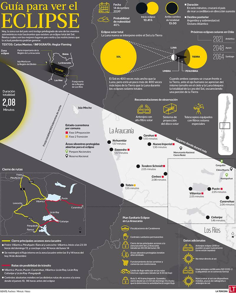 El 14 de diciembre, la zona sur del país será testigo privilegiado de uno de los eventos astronómicos más fascinantes que existan: un eclipse total del sol. Revisa cuáles son las recomendaciones para su observación y las restricciones que la actual pandemia impone.