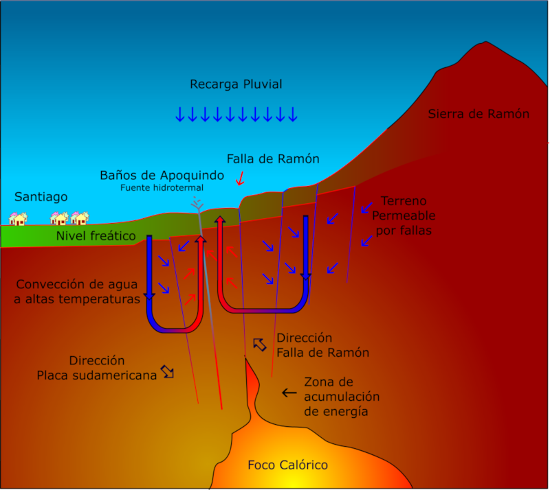 Salucci dice que “una falla de estas características, es un bloque que asciende con respecto a otro, los que se activan por compresión tectónica”, muy similar a la que ocurrió en Japón y la que podría producir un eventual terremoto en la Falla San Ramón en Santiago.