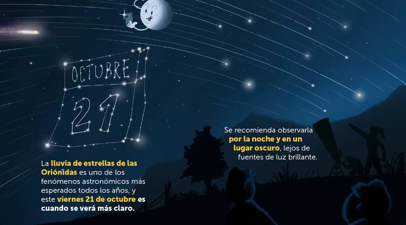 La noche de este viernes se podrá disfrutar en su mejor momento del fenómeno astronómico conocido como lluvia de estrellas Oriónidas, el que se presenta cada año en estas fechas y este 21 de octubre alcanza su mayor intensidad.