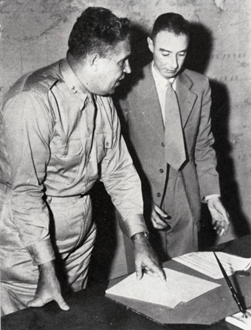 Poco después de que se lanzaran las bombas atómicas sobre las ciudades japonesas de Hiroshima y Nagasaki en agosto de 1945, Oppenheimer se enfrentó al secretario de guerra de Estados Unidos, Henry Stimson, exigiendo que se prohibieran las armas nucleares.