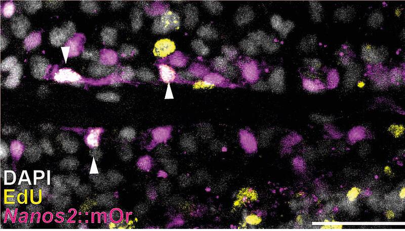 Estas células madre potenciales expresan los genes nanos y piwi, altamente conservados evolutivamente , que permiten el desarrollo de células germinales (espermatozoides y óvulos) en todos los animales, incluidos los humanos. Al mutar específicamente el gen nanos2 con las tijeras genéticas CRISPR, los científicos también pudieron demostrar que el gen es necesario para la formación de células germinales en las anémonas de mar. También se ha demostrado en otros animales que este gen es esencial para la producción de gametos.