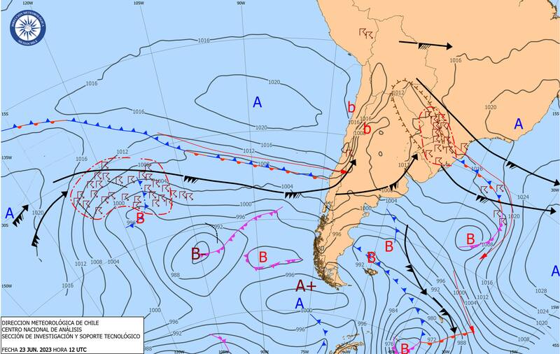 Según el último boletín meteorológico de la DMC, “hoy se observa circulación ciclónica desde el tramo norte de la Región de Coquimbo al norte del país. Entre el tramo sur de la Región de Coquimbo hasta la Región de Valparaíso se aprecia circulación anticiclónica. Entre la Región Metropolitana y la Región de la Araucanía se observa el paso de un sistema frontal zonal asociado a un río atmosférico. Desde la Región de Los Ríos hasta la Región de Aysén se aprecia inestabilidad postfrontal. El tramo norte de la Región de Magallanes se encuentra bajo el predominio de un sistema frontal”, establece la DMC .