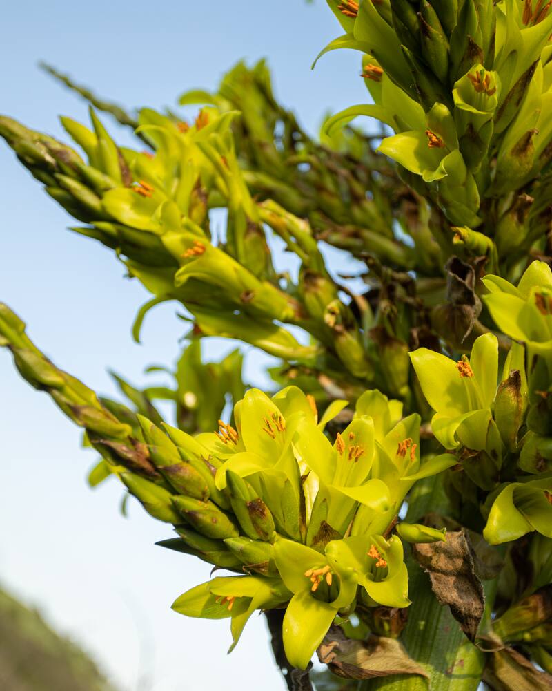 Durante esta semana, guías del Parque Tricao pudieron identificar las atractivas y vistosas flores amarillas de la puya chilensis en las quebradas de los cerros y a las orillas del humedal Giverny. Se trata de una planta endémica del país que forma parte del género Bromelias Sudamericanas.