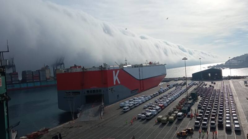 Un extraño fenómeno ocurrió esta tarde en San Antonio, Región de Valparaíso. En el puerto de la ciudad, nubes simularon una gigantesca ola.