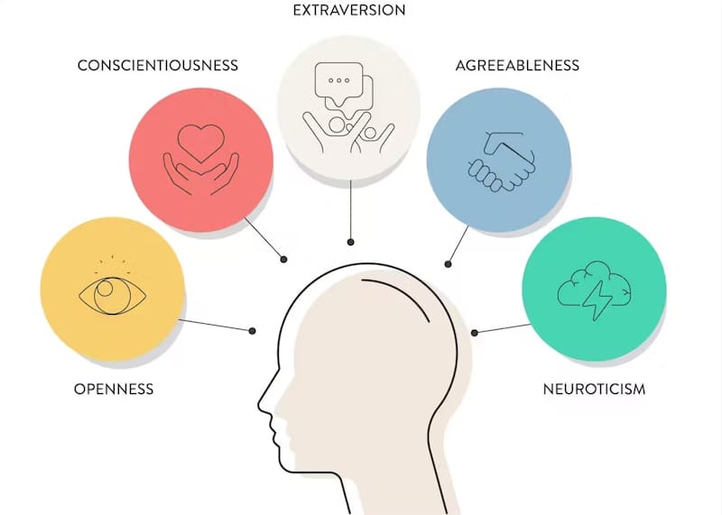 Ya en la década de 1930, los psicólogos literalmente rebuscaron en un diccionario para extraer todas las palabras que describían la naturaleza humana y las clasificaron en categorías con temas similares. Por ejemplo, agruparon palabras como “amable”, “considerado” y “amistoso”. Descubrieron que miles de palabras podían clasificarse clasificándolas en cinco rasgos: neuroticismo, extroversión, escrupulosidad, amabilidad y apertura.