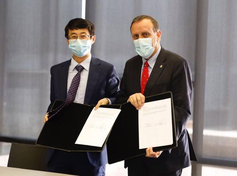 Un nuevo hito en la instalación del laboratorio chino Sinovac se firmó esta mañana en el Centro de Innovación Anacleto Angelini en el Campus San Joaquín de la Universidad Católica.