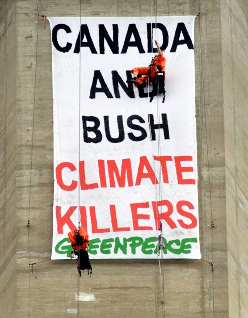 “Canadá y Bush: asesinos climáticos”, decía la gran pancarta que Steven Guilbeault (52) y otros activistas de Greenpeace colgaron desde la Torre CN en 2001, en Toronto, la más alta de Canadá y el mundo en ese entonces. El objetivo era captar la atención del mundo, una semana antes de la Séptima Conferencia de la ONU sobre el cambio climático (COP7), donde se decidiría el destino del Protocolo de Kioto. Ahora, ese mismo escalador y activista defiende los mismos principios, pero desde el Ministerio del Medio ambiente y Cambio Climático de Canadá.