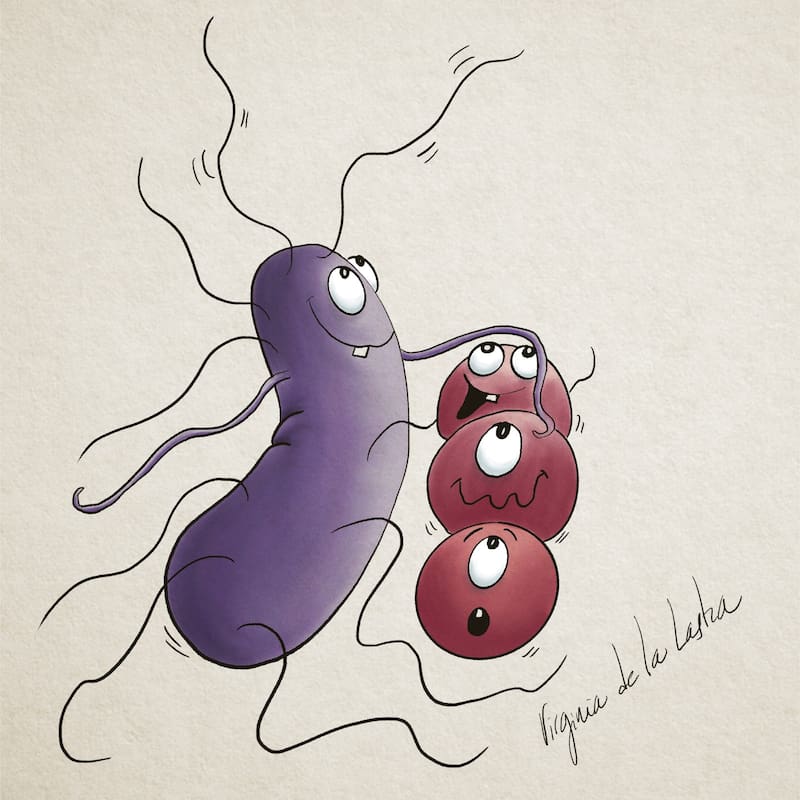 “Para enseñar, yo dejo de lado el tamaño, y en vez de dar clases de microorganismos, hago clases de monstruos. Este simple hecho hace un mundo de diferencia. Además de ser muy entretenido achicarse y tomar la perspectiva de la célula, es mucho más fácil recordar monstruos que recordar bacterias. Finalmente, uno llega a la conclusión de que las bacterias son monstruos, solo que no las vemos”, profundiza.