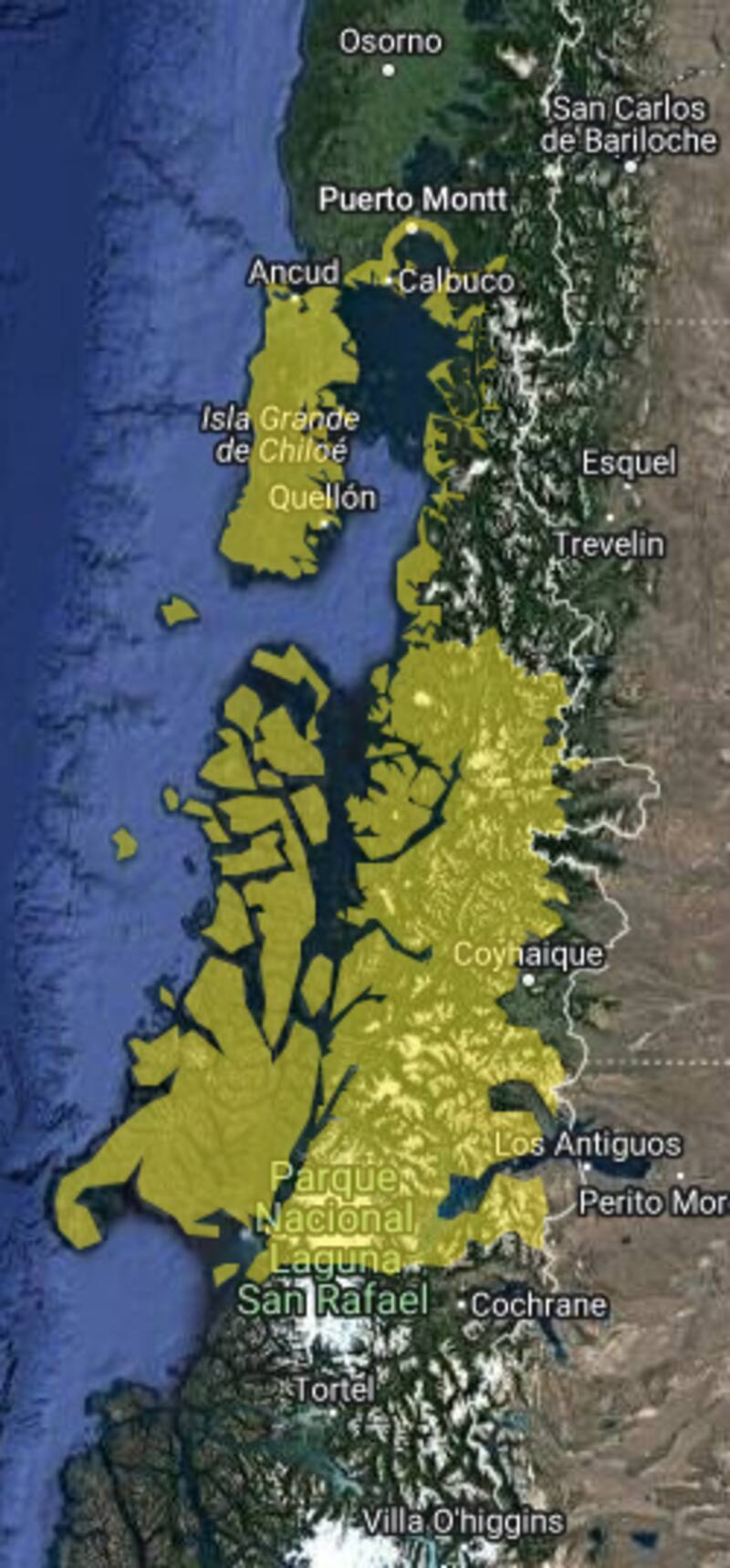 - Región de Aysén: insular norte, interior norte y Cordillera austral norte.