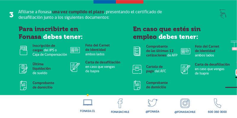 - Carta de desafiliación en caso que se haya hecho el trámite con la Isapre.