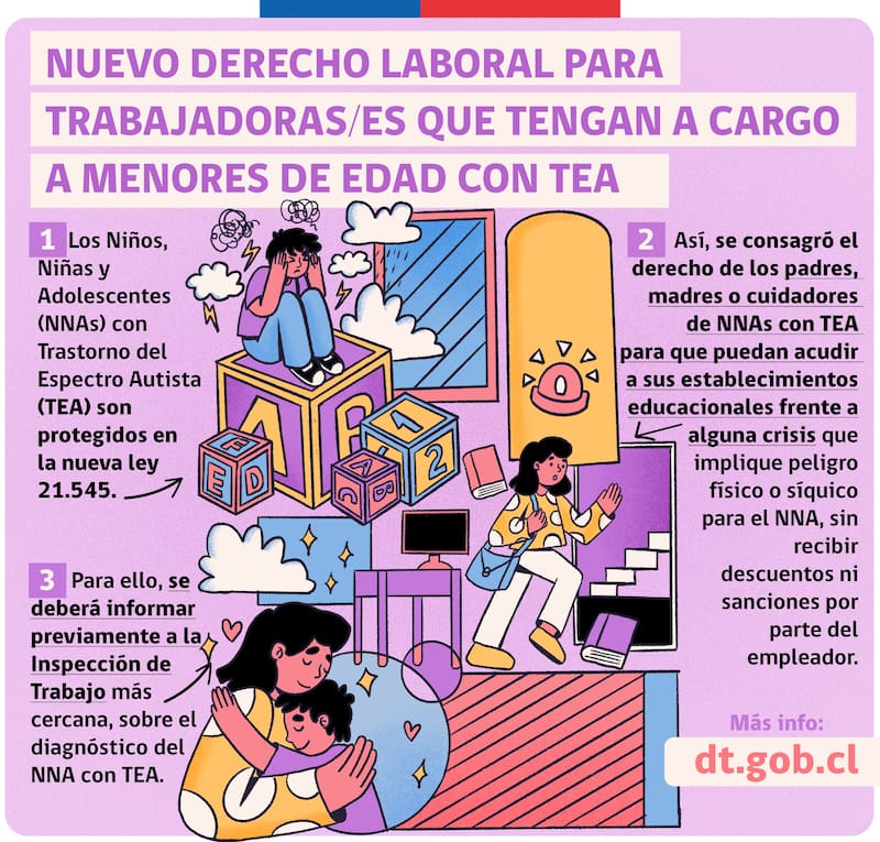 “Los trabajadores dependientes que sean padres, madres o tutores legales de menores de edad debidamente diagnosticados con trastorno del espectro autista, estarán facultados para acudir a emergencias respecto a su integridad en los establecimientos educacionales”.