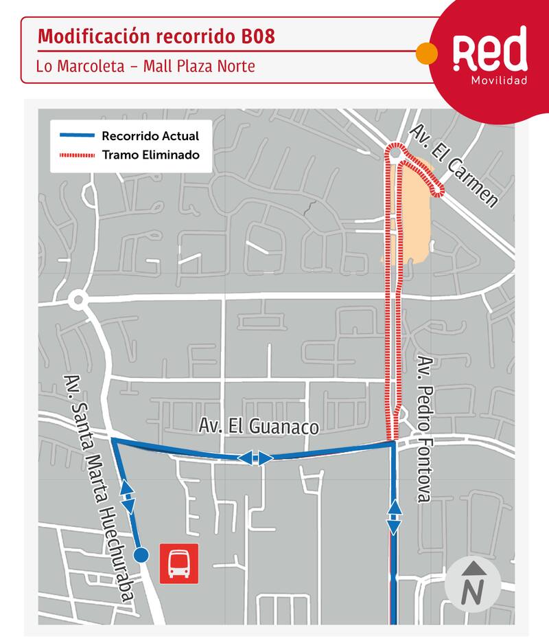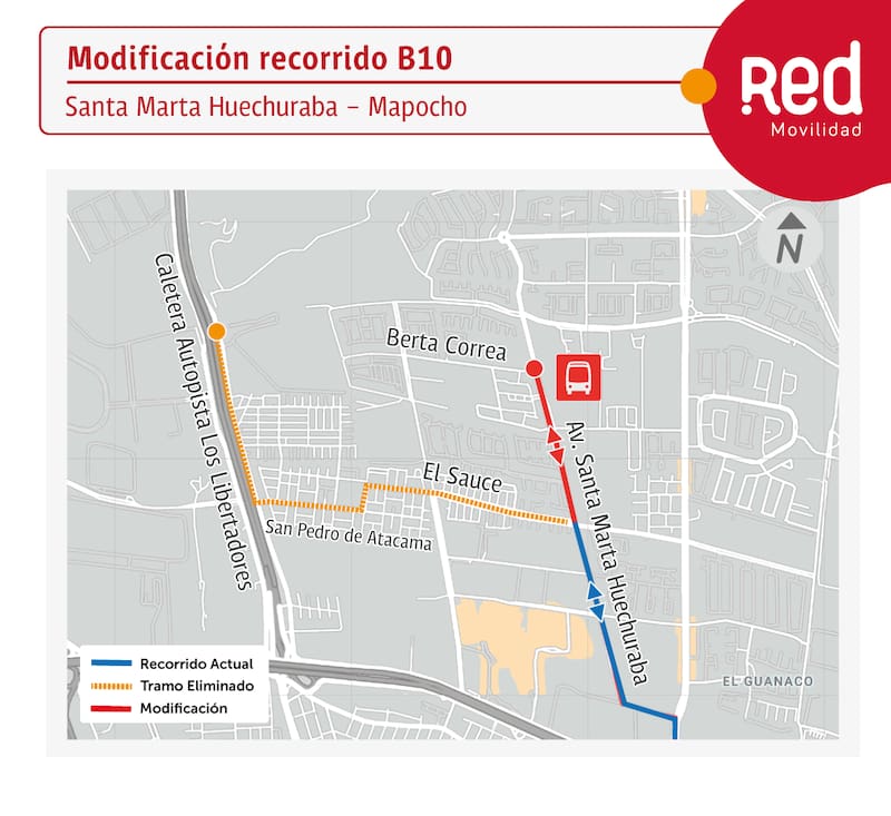 - Recorrido B10 : el recorrido B10 modifica su trazado en ambos sentidos en su tramo norte, transitando por Santa Marta de Huechuraba y dejando de circular por El Sauce, San Pedro de Atacama y Calle 1.