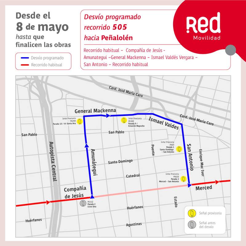 La información otorgada por Red Metropolitana de Movilidad constata que los desvíos son: