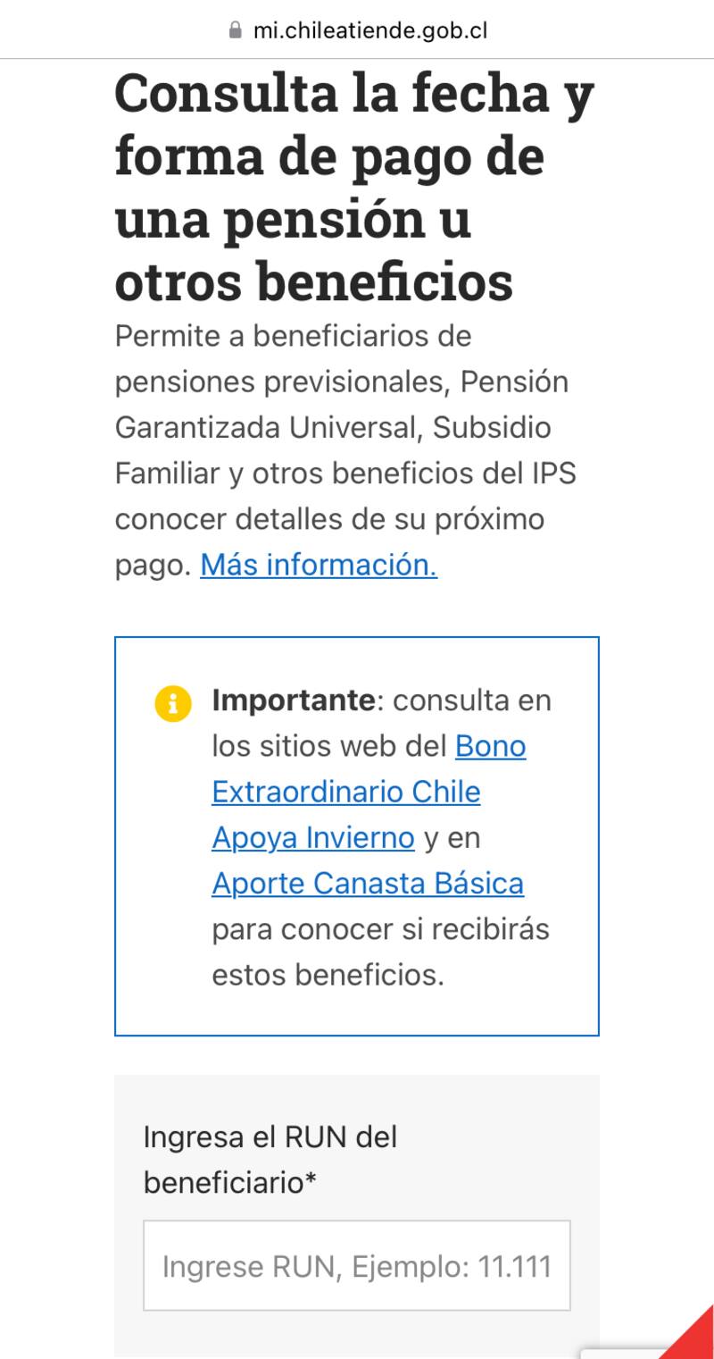 Si tienes más dudas sobre las fechas, en el sitio de ChileAtiende, al ingresar el RUN puedes consultar sobre cuándo se realizarán los pagos de estos y otros beneficios con fechas variables.