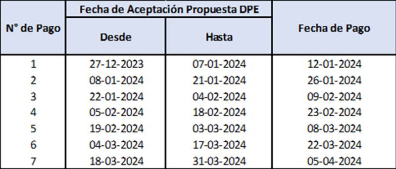 - 12 de enero: fecha de aceptación de la propuesta DPE entre el 27 de diciembre y el 7 de enero.