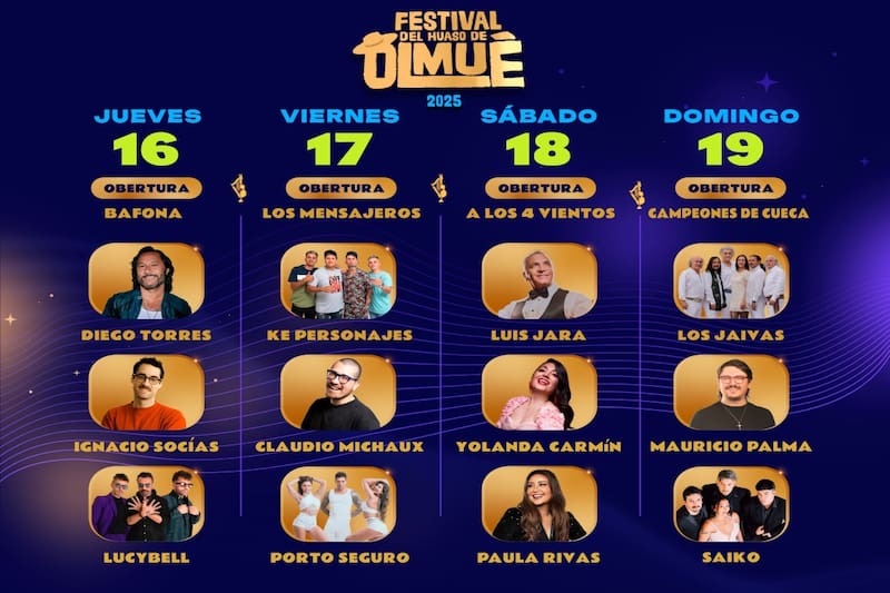 Revisa la parrilla de artistas confirmados por día que estarán en el Festival del Huaso de Olmué 2025: