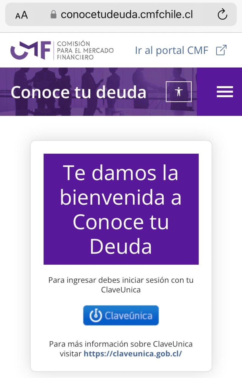 Para obtener el informe de deudas de la CMF de manera virtual, se debe entrar a la página del organismo e ingresar el RUT y la Clave Única.