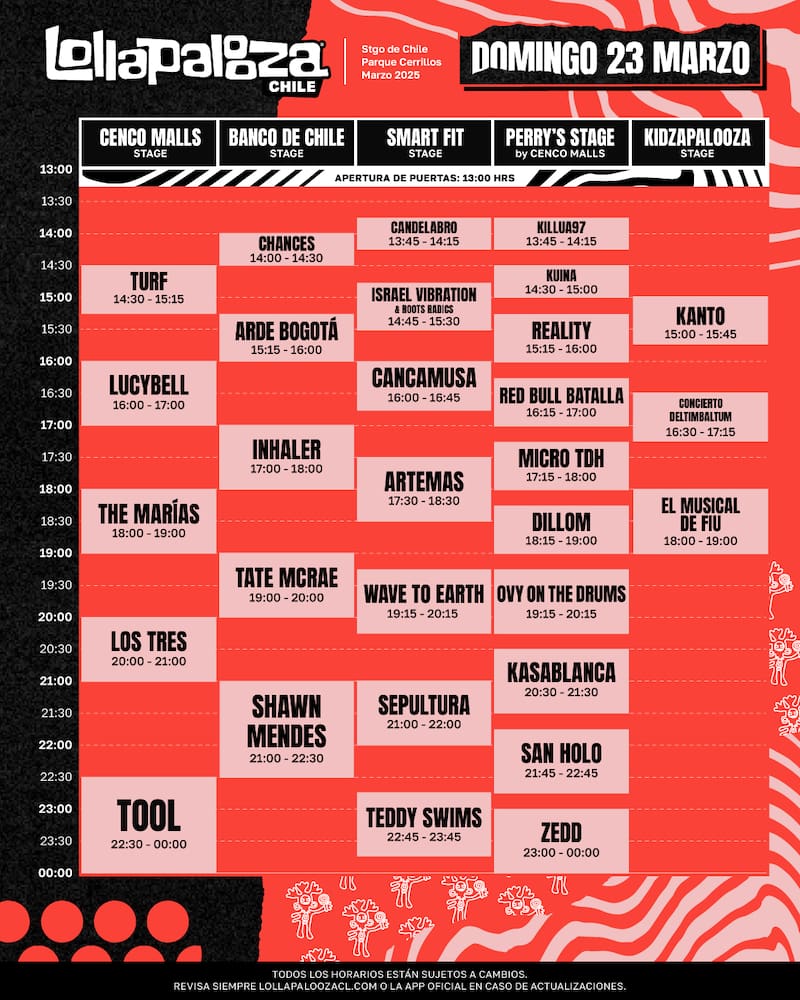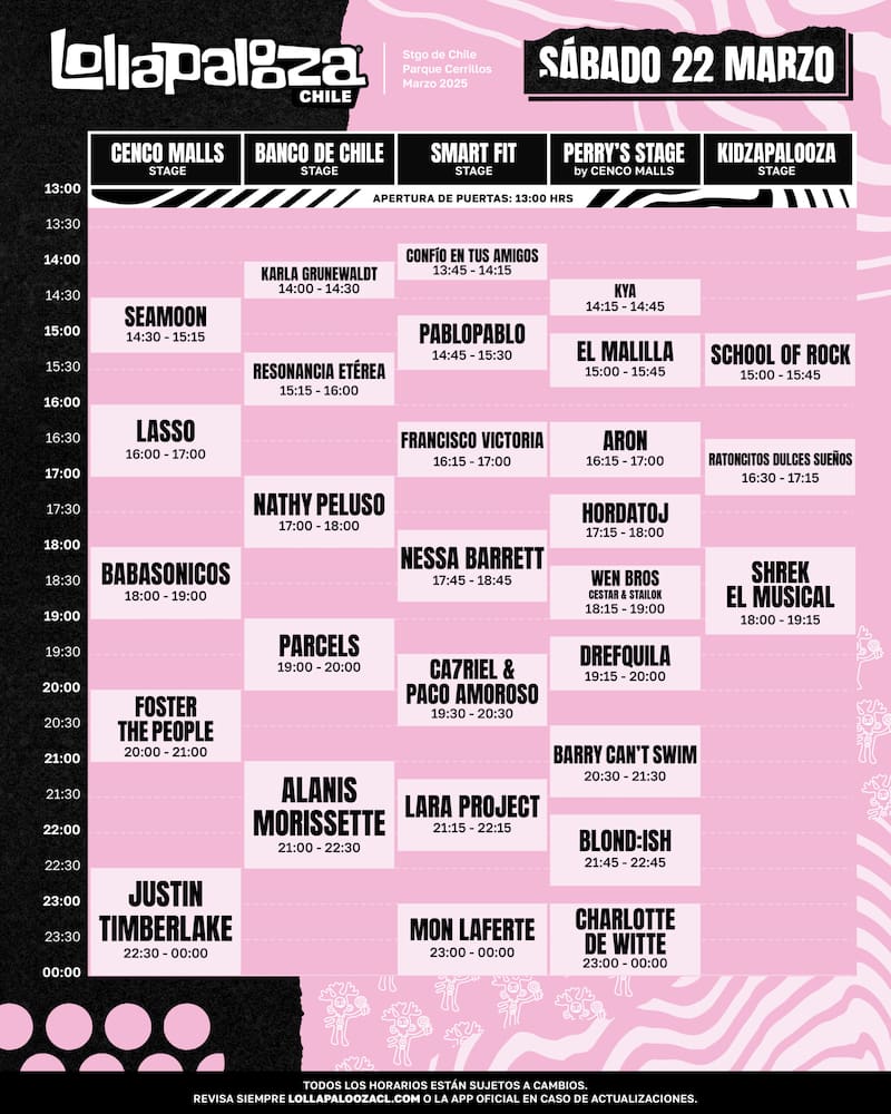 Debido a que la programación se mantiene sujeta a cambios, se recomienda revisar el sitio oficial lollapaloozacl.com.