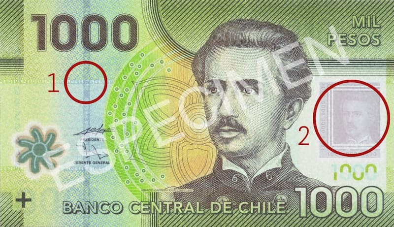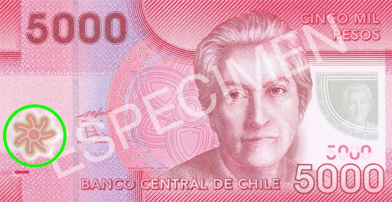 - I (Inclinar). Todos los billetes chilenos tienen características de seguridad que cambian de color al momento de inclinarlos. Por ejemplo, el sello a la izquierda cambiará del dorado al color del billete.