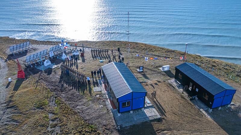 De acuerdo a la Armada argentina, dos compañías privadas donaron módulos habitacionales y paneles solares para la obra.
