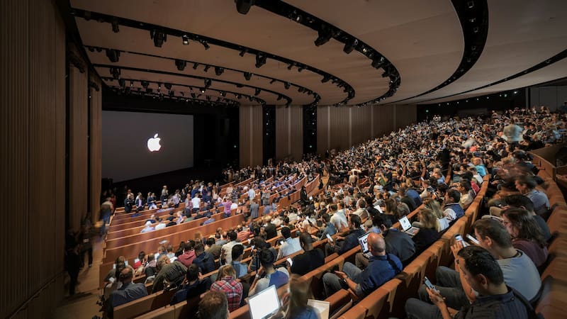 Abajo, dos escaleras de piedra dirigen a los invitados hacia el interior del Steve Jobs Theatre, un enorme y cómodo cine con capacidad para mil personas.