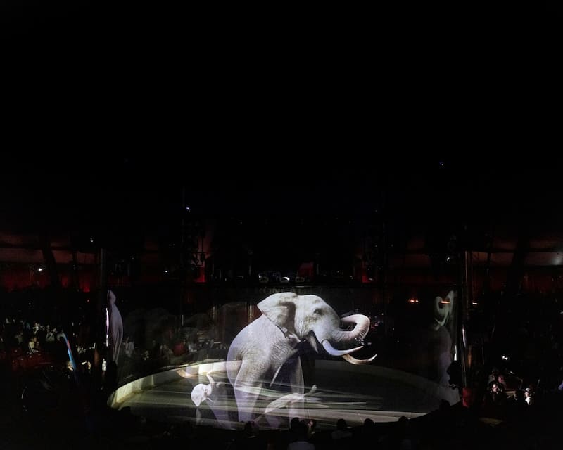 Las luces se apagan y una trompa con unas orejas gigantes comienzan a aletear, dándole la bienvenida a todas y todos los asistentes del circo. Pero no se trata de un elefante real, sino de uno brillante, representado en un holograma en 3D, tecnología que el Circo Roncalli en Alemania adaptó para acabar con el maltrato animal.