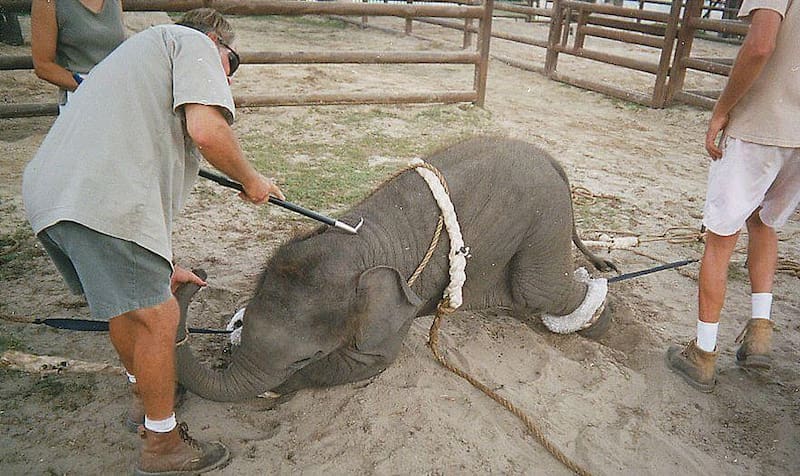 Según explica PETA (Personas por el Trato Ético de los Animales), el entrenamiento de los animales salvajes en los circos, como elefantes, tigres, monos, caballos e incluso perros, se hace a base de “látigos, collares apretados, bozales, picanas eléctricas, barras de metal con puntas filosas en gancho y otras herramientas propias del negocio del circo para provocar dolor”.