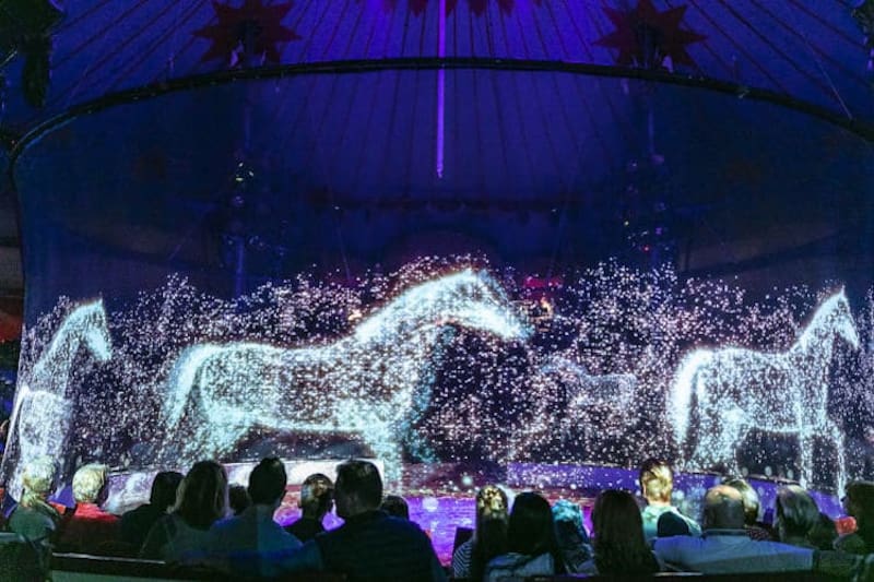 A la vanguardia, este circo dejó de utilizar animales salvajes en la década de 1990 y en 2019 se asoció con una firma alemana que se especializa en realidad aumentada y que le permite tener hologramas de caballos corriendo en círculos, mientras reciben los aplausos de la gente ante este tecnológico espectáculo.