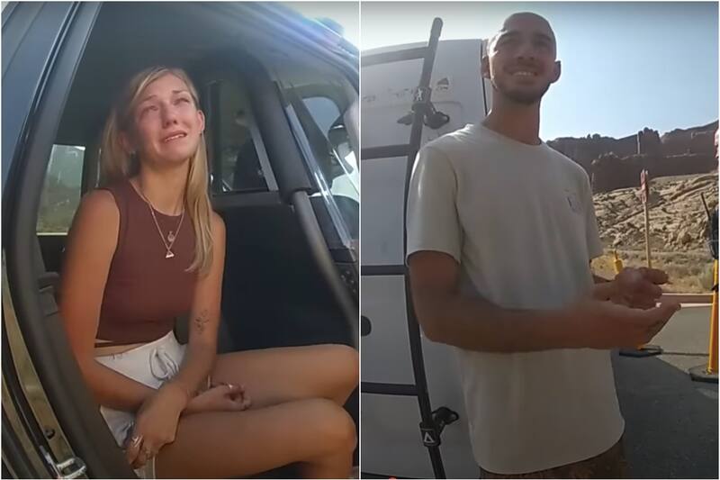 El momento en que la policía de Moab (Utah) encontró a la pareja en la carretera quedó registrado por la cámara corporal que llevaba uno de los agentes.