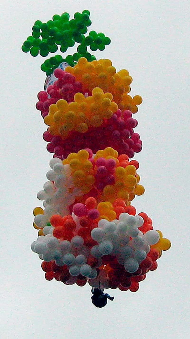 Además, no era primera vez que se ataría con globos y saldría volando. Tan solo un mes antes, se ató a 600 globos inflados con helio y recorrió 110 kilómetros en cuatro horas, desde Paraná a la ciudad argentina de San Antonio.