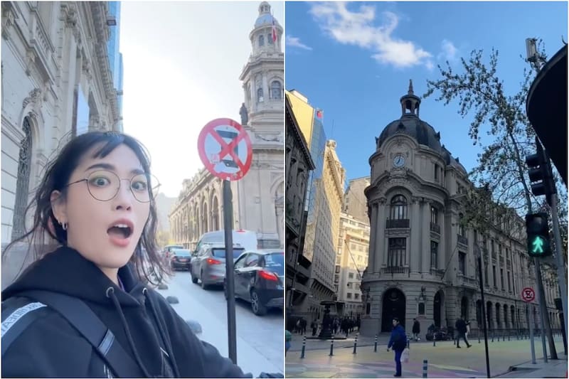 La creadora de contenido Ana Coreana pasó por puntos importantes del centro de Santiago, como la Plaza de Armas, Paseo Ahumada, Biblioteca Nacional y La Moneda.