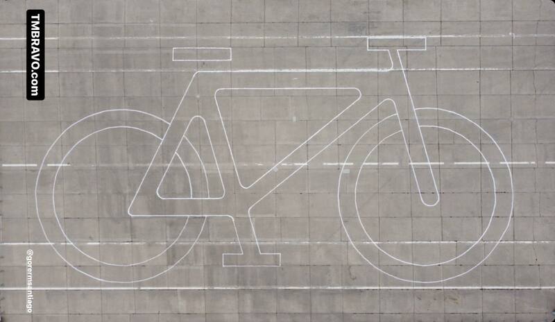 Terminado el discurso, Orrego invitó a todos los asistentes a pasar al campo donde el arquitecto TM Bravo trazó la figura de la bicicleta con pintura blanca que pretendía alojar en su interior a más de 2.700 personas para lograr romper el récord mundial.