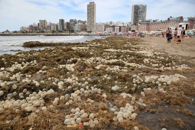 De hecho, en la misma playa argentina ya había sucedido este fenómeno, pero en lugar de papas de mar, la superficie de arena quedó llena de algas y huevos de caracol.